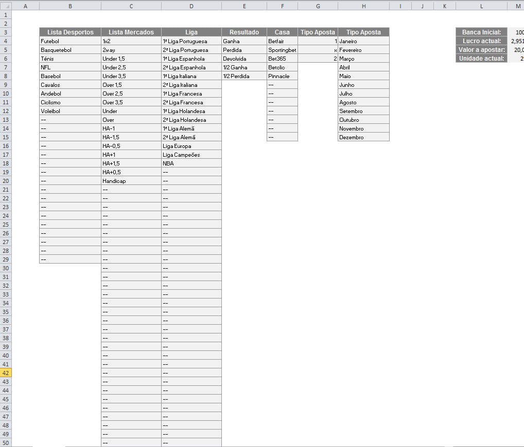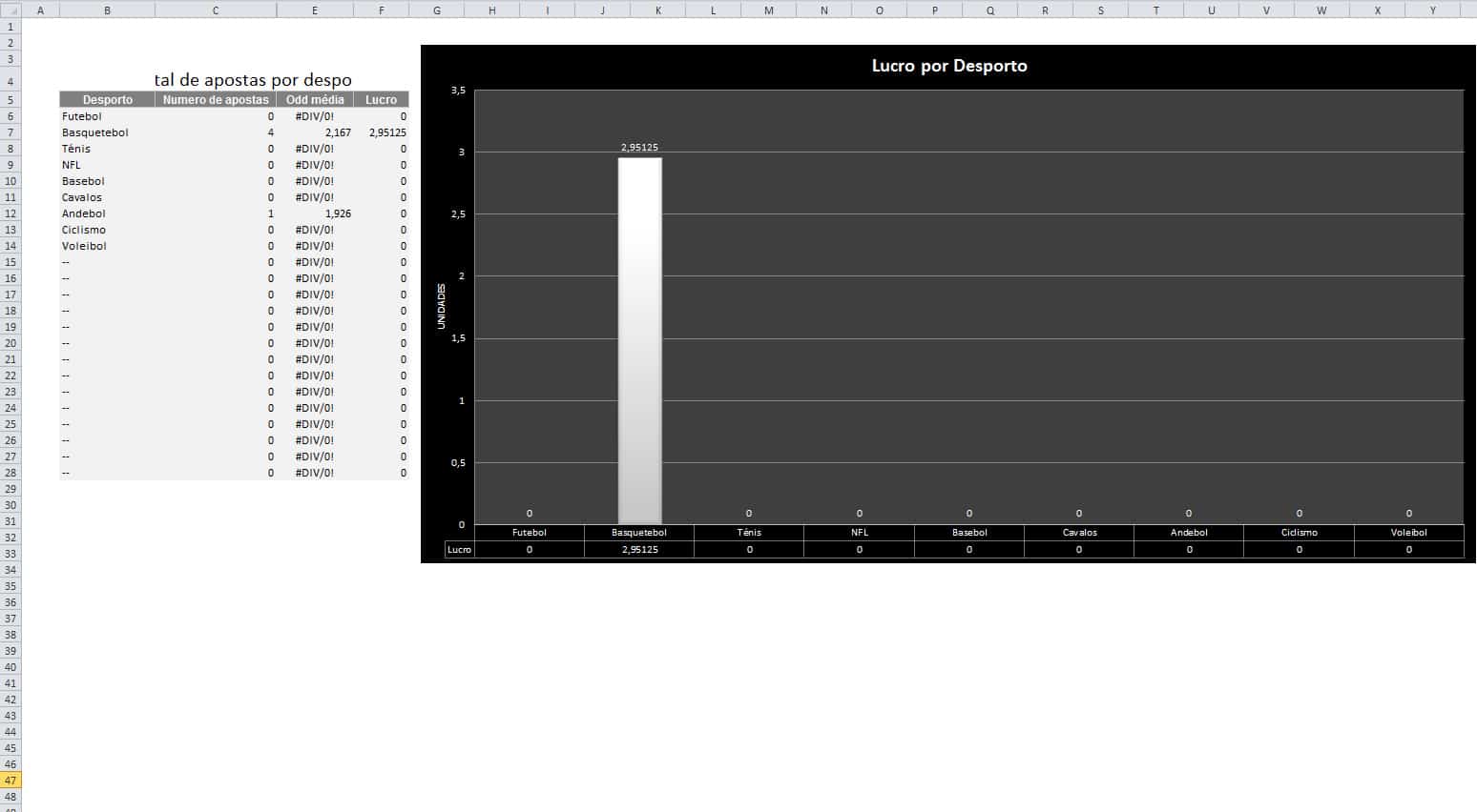 Esta folha não faz milagres, e não te vai fazer ganhar mais ou menos apostas, mas usando-a, poderás ver quais os mercados ou desportos onde tens mais vantagem.