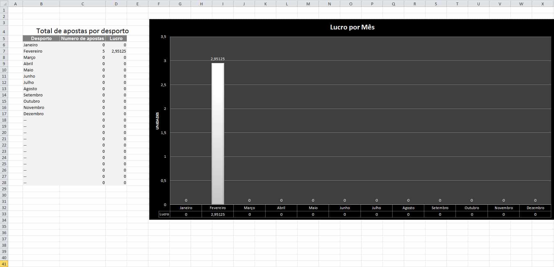 Na folha “Por Mês” é apresentado o teu desempenho nas apostas através de um gráfico. Para que este gráfico esteja coerente com as tuas apostas deves colocar a data em todas apostas que efectuares.